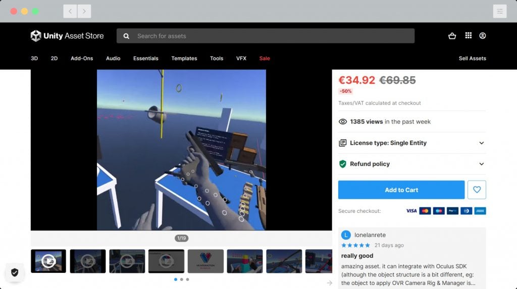 We’ll be using the VRIF asset to add a VR ‘character’ to a VR scene and provide a means of picking up, exploring and even throwing objects. If you’re planning to follow our VR explainer series later this year it might be worth picking up VRIF now while it’s on offer! (You’ll need to create a free Unity account first):