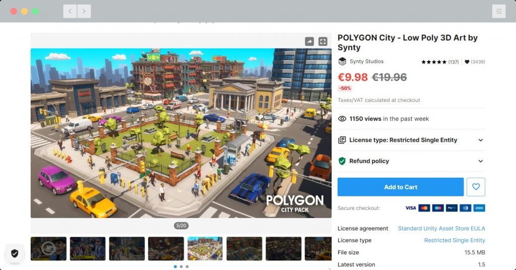 We’re fans of the ‘low poly’ look when it comes to our gaming preferences. Low poly assets are perfect for newbies to games and interactive experience creation as they’re easy to work with, not too demanding on computer resources and can be bought cheaply. SYNTY provide a high quality collection of low poly scenes and ‘packs’, many of which are on offer right now. We’ll be using their CITY PACK as the basis for our VR scene later this year.